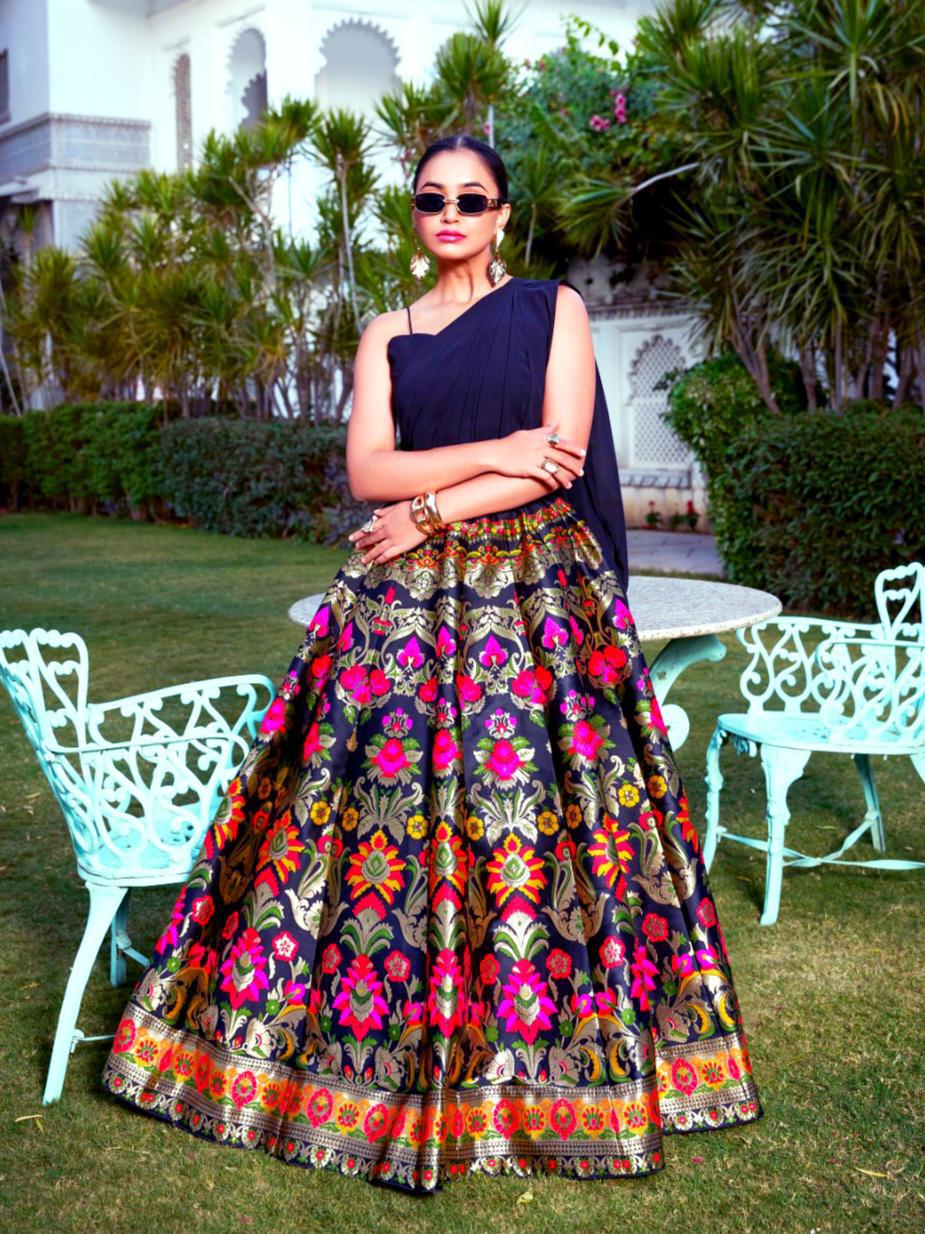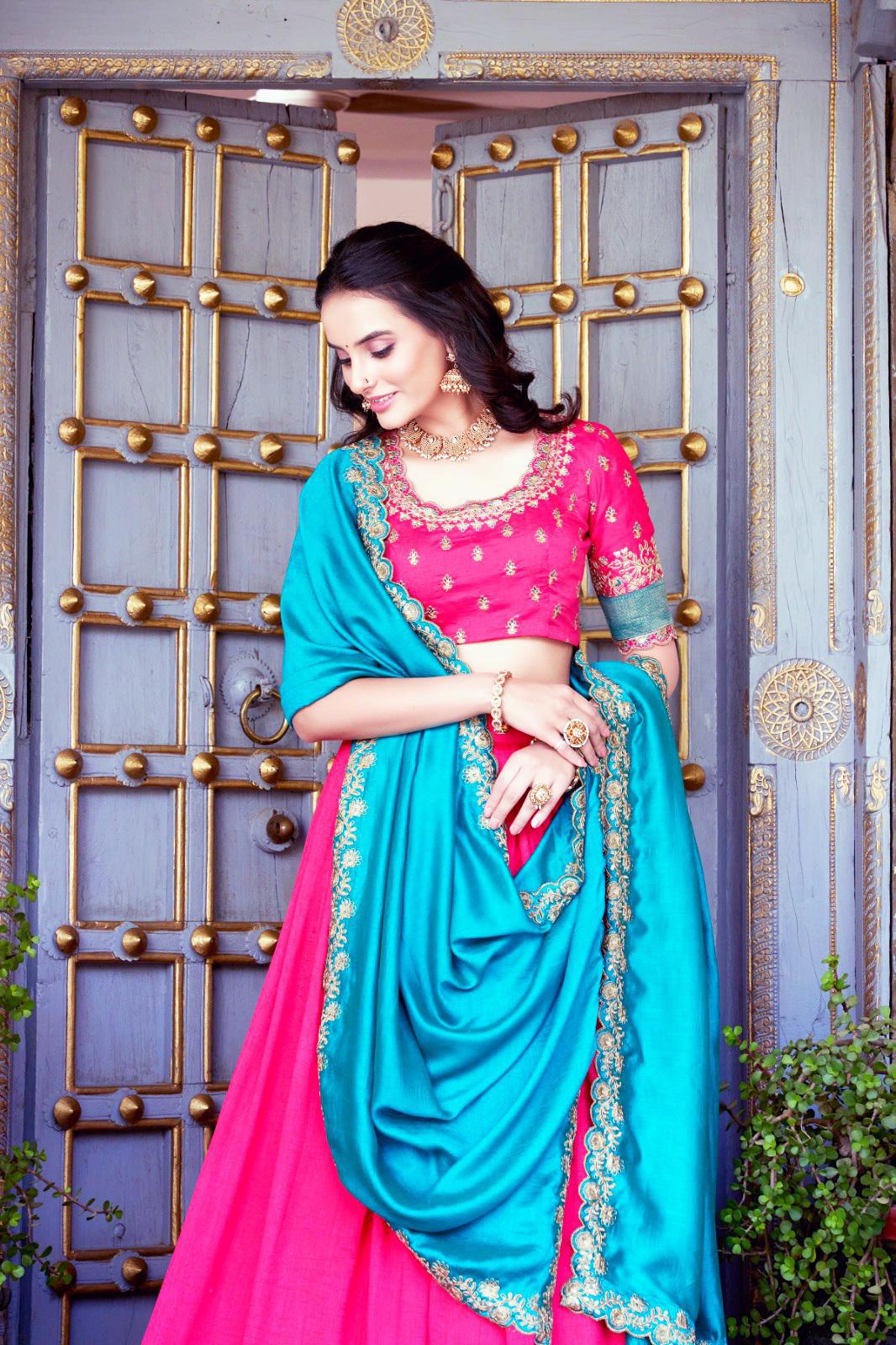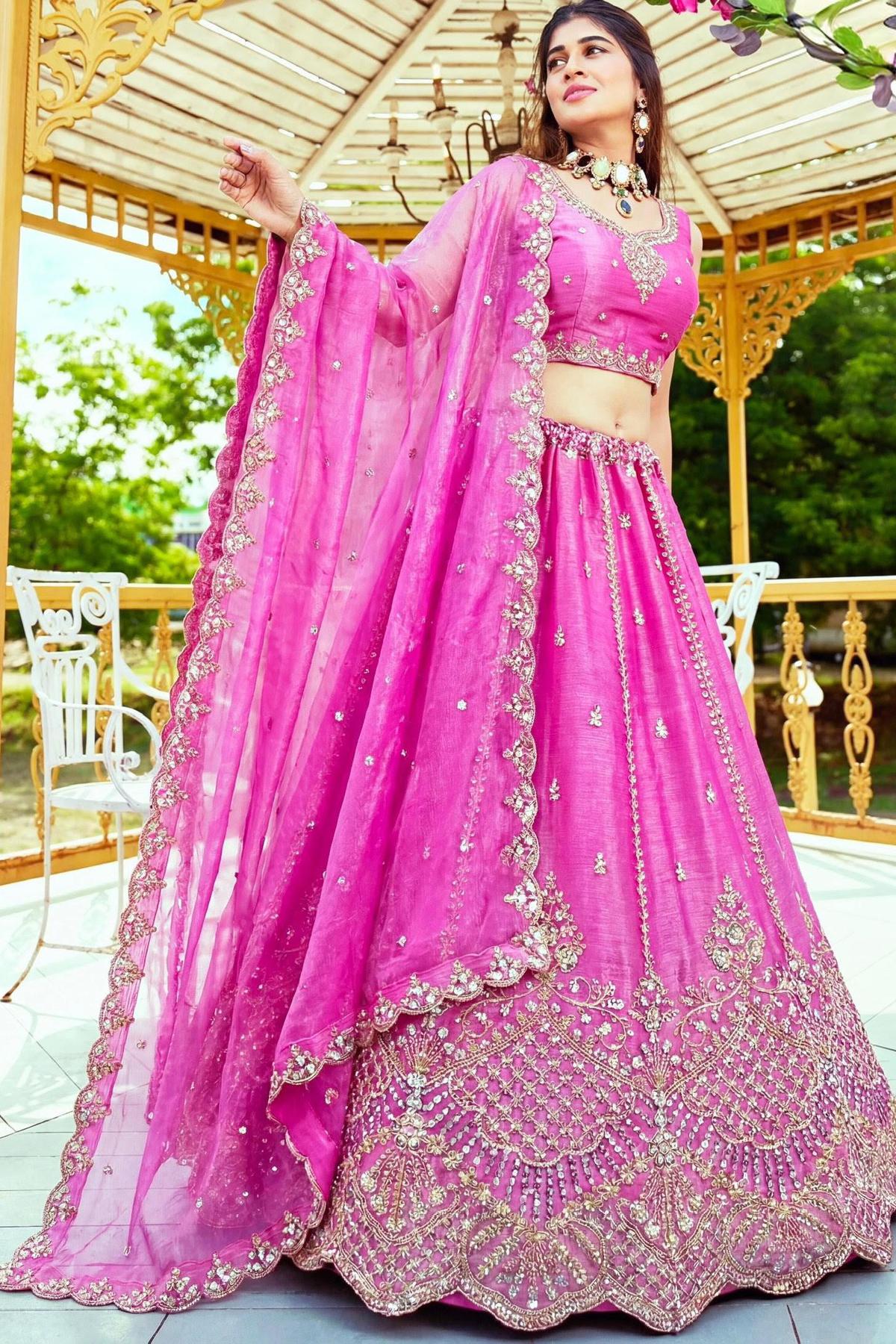 Pink Satin Motif and Crystal Handwork Designer Partywear Lehenga Choli: Midsummer Festival 244,44 € Add to cart