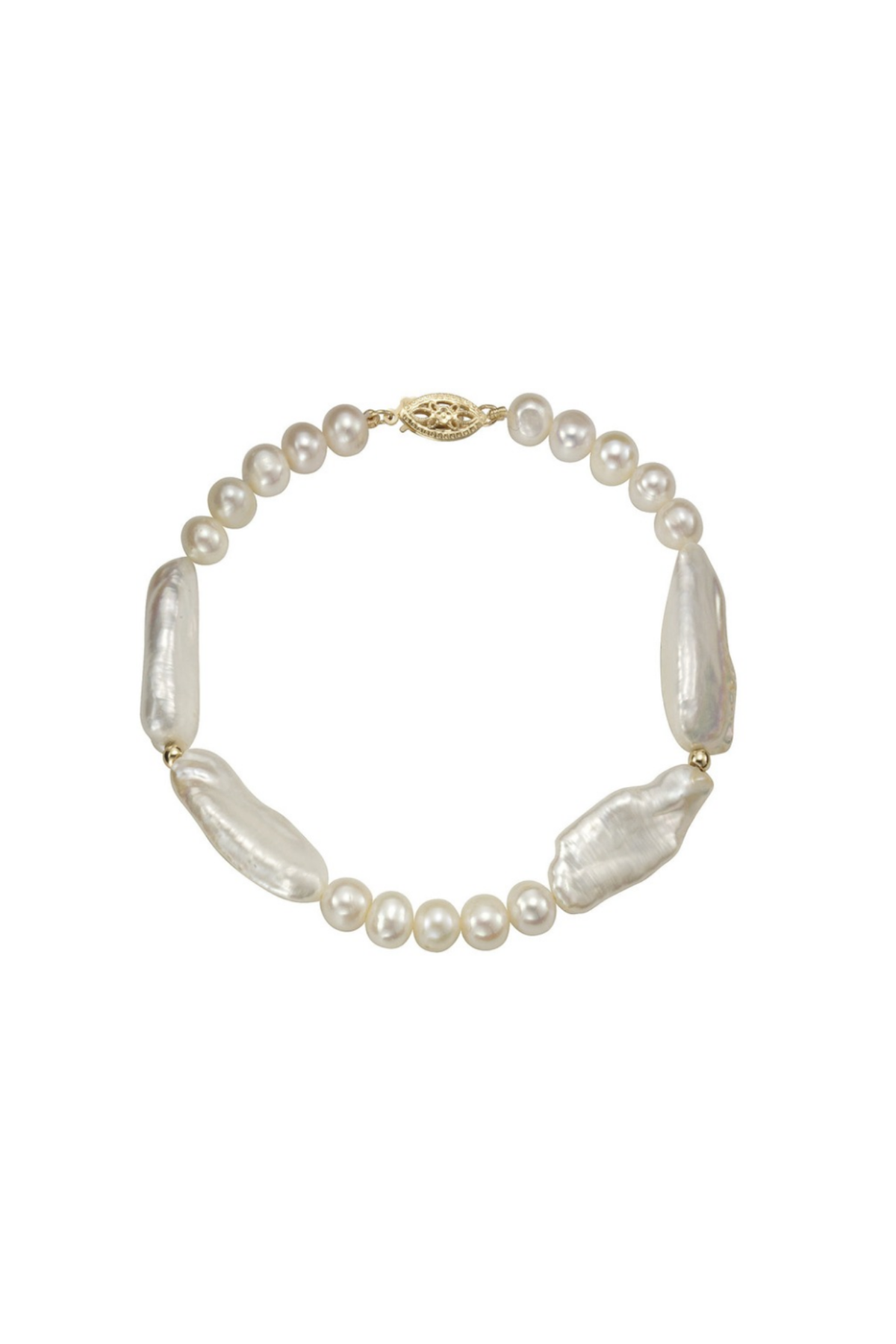Singular Boho-Chic Pearl Bracelet with a 14kt Gold Clasp